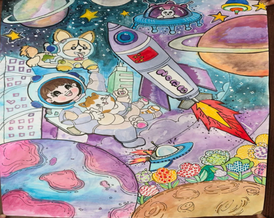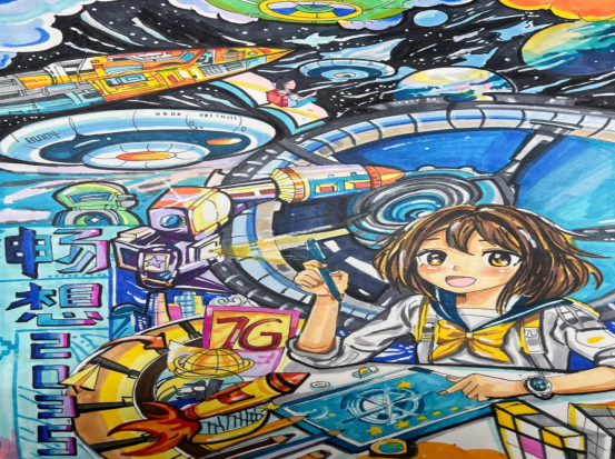 活动中,孩子们运用儿童画、速写、素描等多种绘画形式,将心中的未来世界跃然纸上;以实物手工类乐高、废物利用设计等手工作品,充分展示孩子们的动手能力;通过计算机软件等工具进行数码绘画,让科技与创意完美结合。每幅作品都体现出孩子们细腻的笔触和创造性的思维,将精美的作品对话2035年的自己,畅想2035年的生活,描绘出对个人、家庭、社会发展的美好向往,展示新时代少年儿童的新风貌。