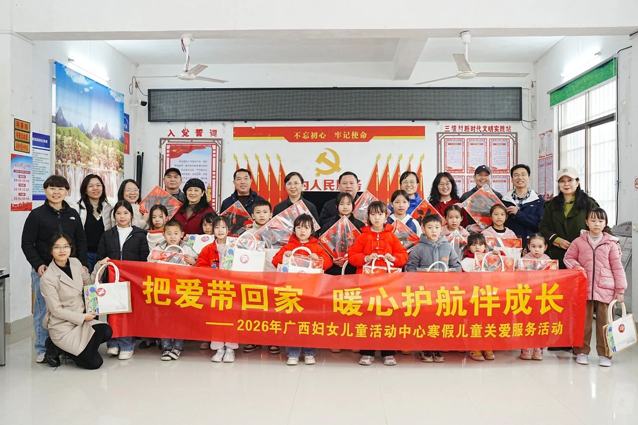 2026年春节前夕,广西妇女儿童活动中心积极响应全国妇联等16部门的号召,开展“把爱带回家 暖心护航伴成长”主题活动。活动紧密围绕当前家庭、家教、家风建设,组织志愿者与专业力量深入社区、乡村,通过传统文化体验、家庭教育指导与亲子互动等形式,引导儿童感受文化魅力、增进家庭温暖,助力广大儿童度过一个健康、充实、温暖的寒假。