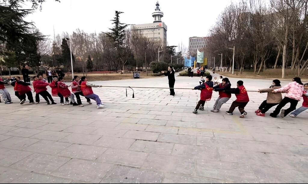 趣味运动会环节更是将现场氛围推向高潮,跳大绳、投壶、拔河等兼具趣味性与协作性的项目轮番上演。孩子们自发组队、相互配合,跳大绳时齐心协力、节奏一致,一根根跳绳在空中划出优美弧线;投壶环节中,孩子们凝神聚力、从容投箭,在传统游戏中感受古韵乐趣;拔河比赛里,大家紧握长绳、脚蹬地面,齐心协力向后发力,赛场之上掌声、欢呼声、加油声此起彼伏。孩子们在运动中体会团结的意义、收获成长的快乐。